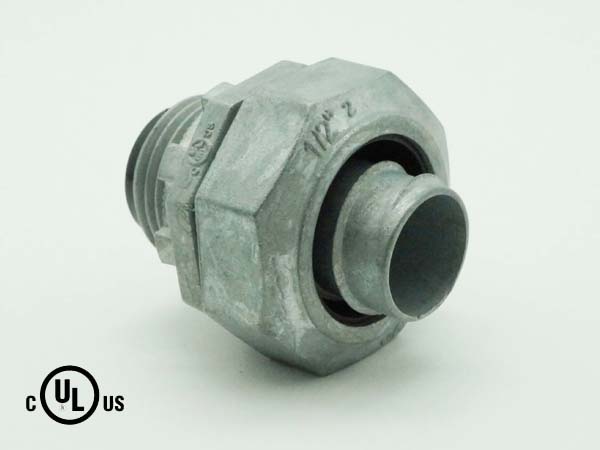 液密型防水金属软管接头 - S50 系列, 通过美国 UL 实验室依 UL 514B, 加拿大 CSA-C22.2 No.56 标准检验取得认证。在电气配线系统中, 于配电线路的转接或终结点, 连接金属保护管与接线盒或电气箱, 使线路延续并保护传输安全。接头主体材质为锌合金, 符合 RoHs 环保规定。盒端为 NPT 螺牙系统, 以太阳型螺帽固定在薄壁型接线盒或攻牙的接口上; 管端以螺帽将金属软管与接头主体连接。本系列接头整体结构紧密, 与液密型金属软管系列 PULTG, PCULTG, PCBLTG, PHLTG 及 PNKLTG 组配后, 形成防潮防水的电气保护系统, 并具有高抗拉的特性, 可普遍使用于室内或室外的环境中。